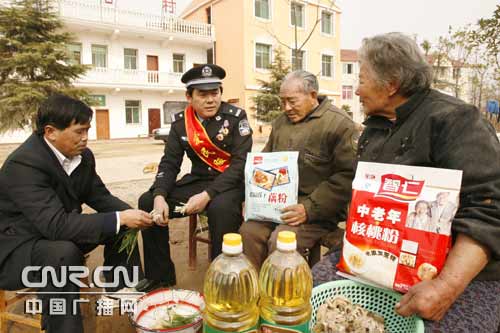 中廣網(wǎng)武漢1月22日消息(記者張毛清 通訊員趙軍)1月21日一大早,武漢鐵路公安局武漢公安處武昌東車站派出所何劉車站駐站民警趙群拎著一大包春節(jié)物資前往花山鎮(zhèn)看望他的12位“老娘”。
