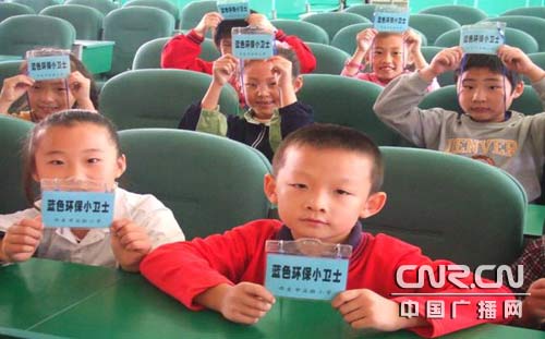 孩子們獲得了“藍色環(huán)保小衛(wèi)士”的稱號,露出了開心的笑容
