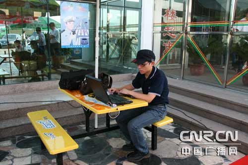 中央臺(tái)記者柴安東在行進(jìn)途中做直播連線
