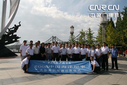 “2008中國海洋紀(jì)事”黃渤海區(qū)報道組業(yè)務(wù)指導(dǎo)耿旭主持了出發(fā)儀式—中廣網(wǎng)記者李朝奮攝