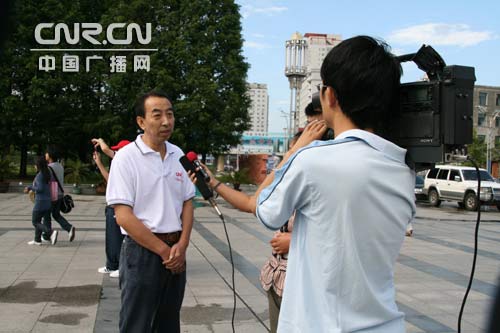 “2008中國海洋紀(jì)事”黃渤海區(qū)報道組組長鄭凱接受丹東市媒體的采訪—中廣網(wǎng)記者吳菁攝