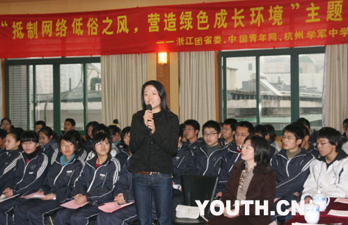 | 中廣網(wǎng)北京2月26日消息 網(wǎng)絡惡搞是否令人無法容忍?網(wǎng)絡對青少年學習和情感帶來多大程度的影響?在杭州學軍中學高一(1)班25日舉行的“抵制網(wǎng)絡低俗之風”主題班會上,同學們用小品《算你狠》和改編自《老鼠愛大米》的《我們愛網(wǎng)絡》給出了答案:我愛你,愛著你,但是不會迷戀你,不管有多少誘惑,我都會把握好自己,不沉溺虛擬世界才有益。