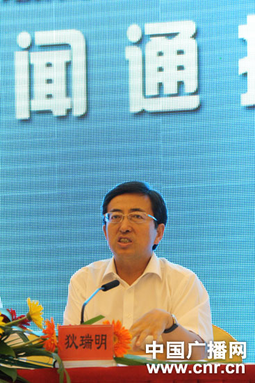 8月23日,“富民強(qiáng)區(qū) 全國知名網(wǎng)絡(luò)媒體看內(nèi)蒙古——走進(jìn)呼和浩特”大型網(wǎng)絡(luò)宣傳采訪活動(dòng)舉行新聞通報(bào)會(huì)。圖為呼和浩特市委常委、市委秘書長狄瑞明介紹呼和浩特經(jīng)濟(jì)社會(huì)發(fā)展情況。