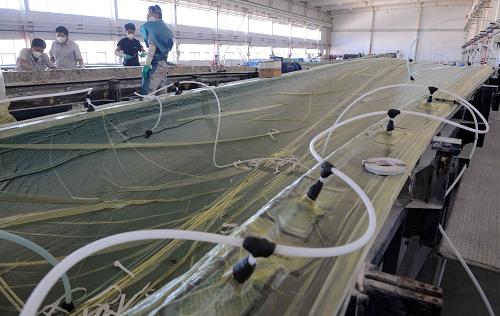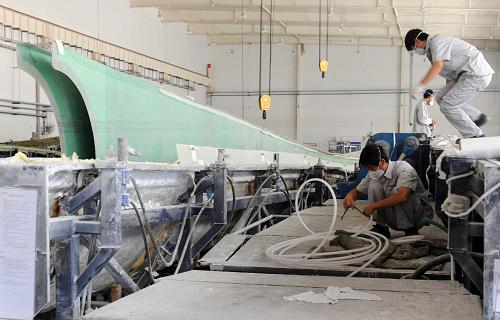 8月6日,國電聯(lián)合動力技術赤峰有限公司工人在松山區(qū)工業(yè)機械加工園車間制作模具。西部大開發(fā)十年來,內蒙古風電產業(yè)發(fā)展迅猛,致力打造“風電三峽”,建設輻射首都北京的綠色能源大區(qū)和能源戰(zhàn)略儲備基地。截至2010年初,內蒙古自治區(qū)風力發(fā)電裝機容量突破500萬千瓦,到“十二五”末,風電裝機容量將達到2000萬千瓦。新華社記者張領攝
