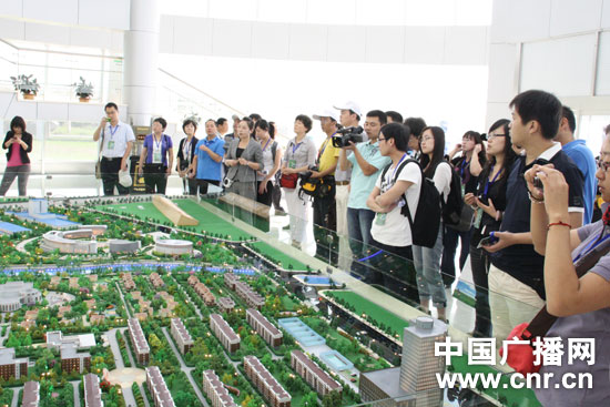 8月23日,全國知名網(wǎng)絡(luò)媒體記者走進呼和浩特伊利工業(yè)園。圖為記者們認真傾聽講解員介紹伊利工業(yè)園的情況。中廣網(wǎng)記者 王曉宇 攝
