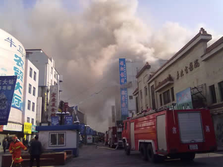 2010年11月5日上午九時(shí)許,吉林市河南街商業(yè)大廈發(fā)生火災(zāi),大火使許多商戶被困,但起火原因不明,人員及財(cái)產(chǎn)損失情況還有待核實(shí)。
