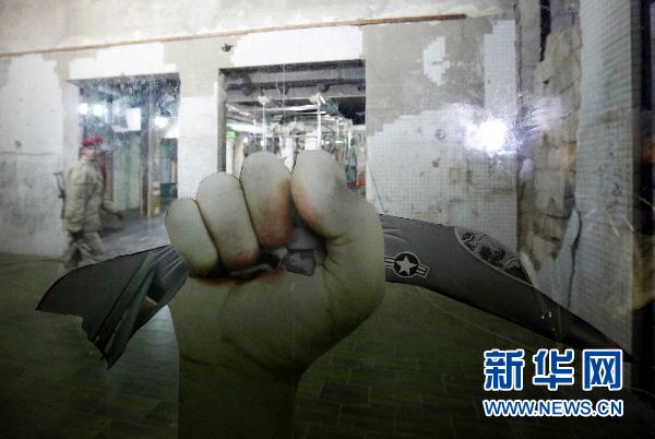 3月19日,在利比亞首都的黎波里,一名士兵走過一只手捏碎一架F-16飛機(jī)的宣傳圖片。據(jù)利比亞電視臺(tái)20日?qǐng)?bào)道,截至目前已有約48人在空襲中死亡,另有150人受傷。 新華社/路透