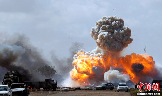 3月20日,班加西附近,忠于卡扎菲的武裝力量裝備遭遇聯(lián)軍襲擊。