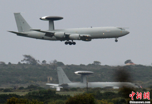 3月20日,在位于塞浦路斯的英國阿克羅蒂里空軍基地,一架英國皇家空軍飛機準備著陸,另一架飛機停在后方。美國國防部聯(lián)合參謀部主任威廉·格特尼19日在五角大樓新聞發(fā)布會上透露,在第一波襲擊中,美國和英國的軍艦和潛艇向利比亞海岸的20多個防空目標發(fā)射了112枚戰(zhàn)斧式巡航導彈。