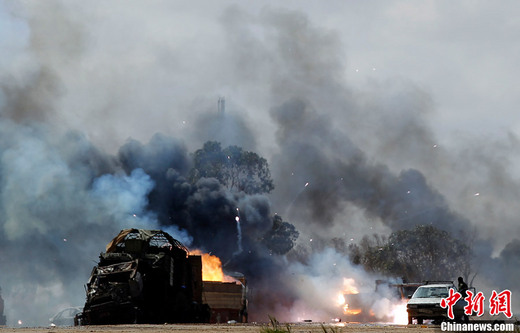 3月20日,班加西附近,忠于卡扎菲的武裝力量裝備遭遇聯(lián)軍襲擊。