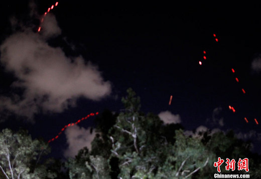 3月21日,利比亞首都的黎波里防空炮火向空中射擊。利比亞首都的黎波里多處地點(diǎn)21日夜間遭轟炸,這是西方國家連續(xù)第三天晚上對(duì)利比亞采取軍事行動(dòng)。