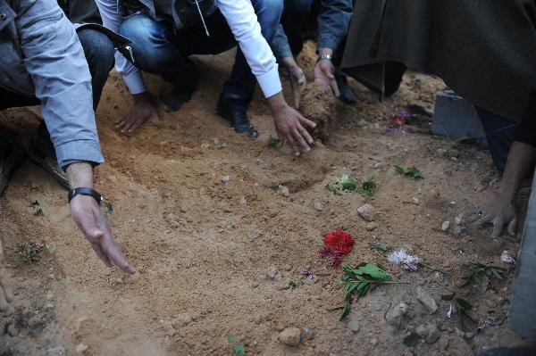 3月24日,在利比亞首都的黎波里,人們?yōu)槟寡ㄅ嗤痢?利比亞官方當日宣布,近100名平民在西方聯(lián)軍空襲中喪生。 新華社記者楊光攝
