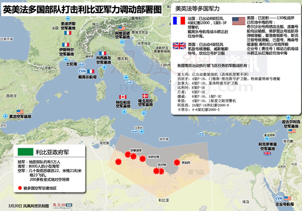英美法多國部隊(duì)打擊利比亞軍力調(diào)動(dòng)部署圖