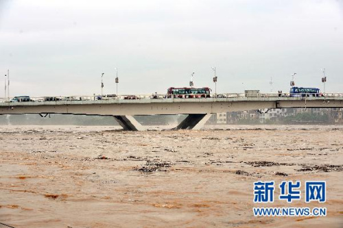 6月17日,洪水通過漓江大橋。新華社記者 陳瑞華 攝