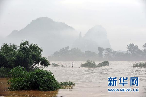6月17日,漓江邊上的農(nóng)田已成澤國。新華社記者 陳瑞華 攝