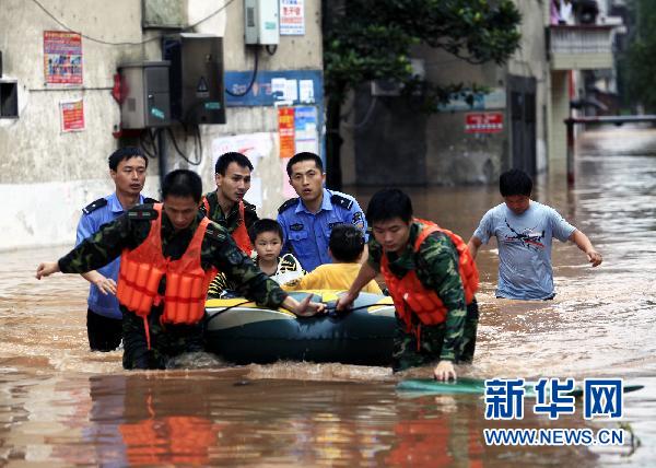 6月23日傍晚至24日上午,江西省萍鄉(xiāng)市普降大雨,全市平均降雨量在100毫米以上,萍水河洪水暴漲,城區(qū)部分街道發(fā)生內(nèi)澇。萍鄉(xiāng)市公安局組織千余名民警投入抗洪一線,共轉(zhuǎn)移群眾3200多人,搶運(yùn)物資100多噸! ⌒氯A社發(fā)(汪立新 攝)