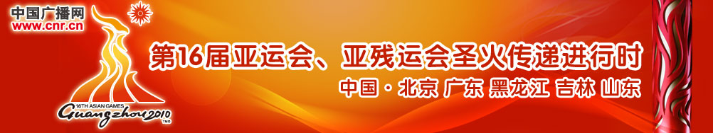 中廣網(wǎng)首頁(yè) | 專題首頁(yè) | 圖片聚焦 | 要聞 | 廣州亞運(yùn)會(huì)概況 | 圖片傳真 | 獨(dú)家專訪 | 圣火傳奇 | 記者手記 | 媒體報(bào)道 | 火炬手風(fēng)采