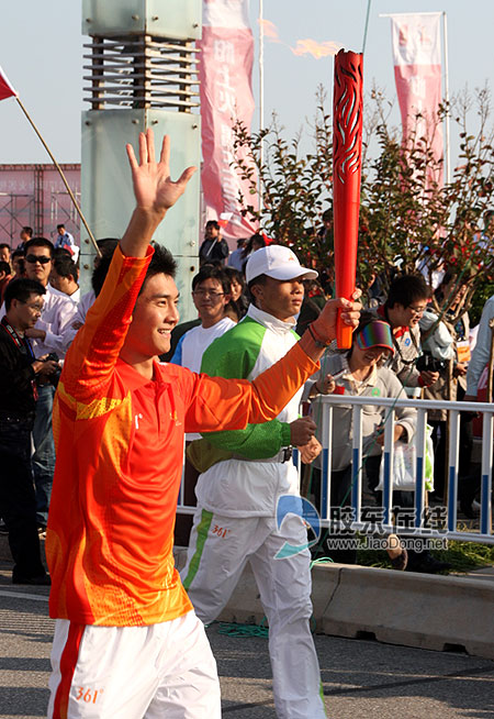 邢傲偉擔(dān)任亞運(yùn)會(huì)火炬?zhèn)鬟f海陽(yáng)站首棒