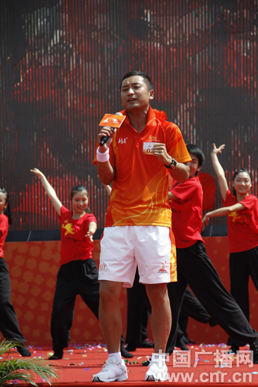 中廣網(wǎng)中山10月13日消息(記者時晨)10月13日,第16屆亞運會廣東省內(nèi)的第一站火炬?zhèn)鬟f活動在中山舉行。亞運圣火傳遞主題曲《傳遞愛》的演唱者劉坤山作為火炬手參加了中山站的火炬?zhèn)鬟f活動。在火炬?zhèn)鬟f結(jié)束儀式上,劉坤山在中山全民健身廣場與電子科大中山學(xué)院的學(xué)生們一起演唱了火炬?zhèn)鬟f歌曲《傳遞愛》。