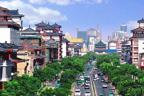 中國西大街建設(shè)突出仿唐建筑的風格,沿街建筑的形式、色彩、材料以及景觀燈的選擇和建設(shè)都與西大街的仿古特色協(xié)調(diào)一致,形成富有西安特色的歷史街區(qū)。此外,在西安市委北邊沿西大街一段,形成一個傳統(tǒng)仿古風味濃厚的商業(yè)地段。西大街仿古一條街對沿街原有和新建建筑都進行了以唐風為主的改造,工程涉及的2000米長范圍內(nèi),街道兩側(cè)通視走廊內(nèi)建筑物限高9米,通視走廊以外限高36米,即不超過鐘樓的高度。改造保留了西大街的所有樹木,沒有出現(xiàn)已往的街道拓寬就得挖毀樹木情形。
