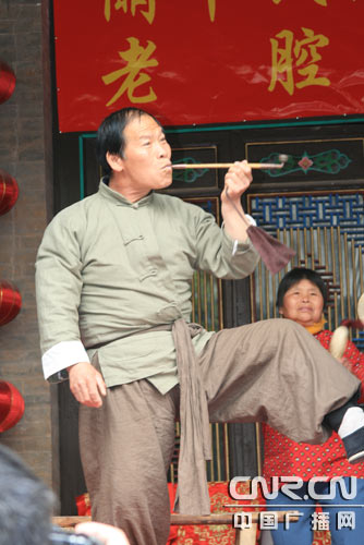現(xiàn)場(chǎng)的老腔、皮影表演讓參觀者通體浸潤(rùn)在文化精華之中,就像長(zhǎng)途顛沛的行者享受溫泉沐浴一般,嘗盡快餐文化的現(xiàn)代人對(duì)此有著無(wú)法言說(shuō)的迷戀和執(zhí)著。盡管里面的唱詞我無(wú)從聽(tīng)懂,可是分明有一種東西震顫著我的靈魂,使近乎麻木的我的血又有了沸騰的溫度,飽受流離之苦的心有了暖潤(rùn)的歸依。穿行在歲月遠(yuǎn)去而韻味愈濃的民俗集群中,一個(gè)近乎頑固、分明強(qiáng)硬的念頭無(wú)法揮去,真的要停住遠(yuǎn)行的腳步嗎?在將腦子里所有的念頭翻找了千百遍以后,我無(wú)法也無(wú)力反駁,整個(gè)人無(wú)力到近乎癱軟。我是如此地從骨頭里面喜歡著這里,以致于不敢碰觸,生怕我的冒失會(huì)驚擾到他。心頑固地留在這里,拖著空洞的軀殼,我匆匆、落荒逃離。