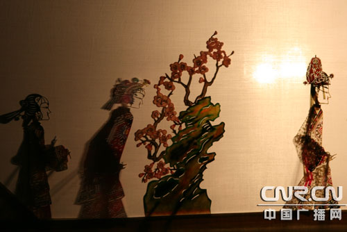 從后臺(tái)拍攝的皮影戲表演