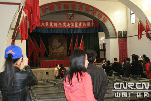 中國共產(chǎn)黨第七次代表大會會場感染著前來參觀的人們