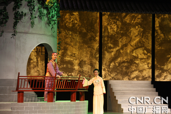 圖為黃梅戲《風(fēng)雨麗人行》的演出現(xiàn)場。(中廣網(wǎng)記者時晨 攝)