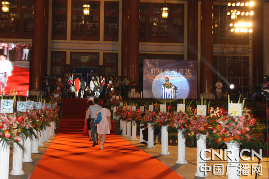 頒獎晚會舉行了簡短而熱烈的場外儀式,全國各省、自治區(qū)、直轄市文化廳(局),新疆生產(chǎn)建設(shè)兵團(tuán)文化局,解放軍總政治部、武警總部宣傳部、全國總工會共35個單位的代表,通過群星紅地毯走進(jìn)中山紀(jì)念堂。