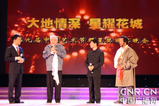 圖為“群星獎”頒獎晚會上,著名表演藝術(shù)家李默然老師對“群文獎”獲獎?wù)哌M(jìn)行評價(jià)。(中廣網(wǎng)記者時(shí)晨 攝)