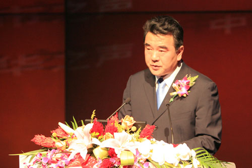 中央人民廣播電臺(tái)臺(tái)長王求在發(fā)布會(huì)上致辭(中廣網(wǎng)記者紀(jì)樂樂 陳曉冉 攝)