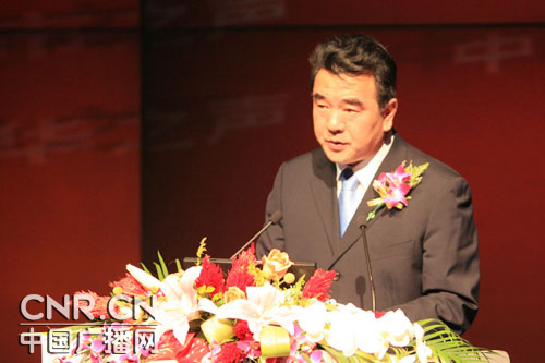 中央人民廣播電臺臺長王求在發(fā)布會上致辭(中廣網記者紀樂樂 陳曉冉 攝)