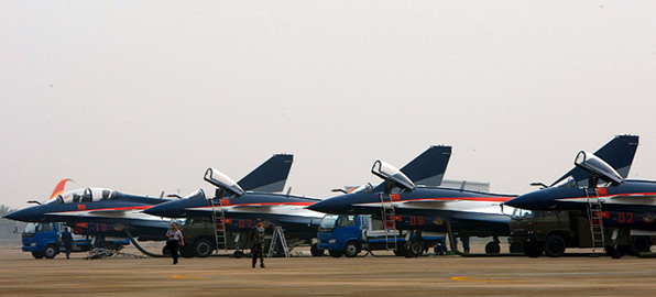 地勤人員正在為八一表演隊殲-10飛機(jī)進(jìn)行飛行前準(zhǔn)備