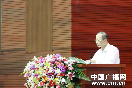 臺(tái)灣大學(xué)副校長(zhǎng)包宗和在11日專題研討匯報(bào)會(huì)上匯報(bào)文化教育組討論共識(shí)(中廣網(wǎng)記者朱虹 攝)
