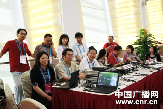 中央臺(tái)前方直播組在直播現(xiàn)場(chǎng)。中廣網(wǎng)記者 朱虹 攝