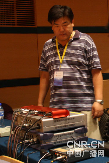 中央臺(tái)前方報(bào)道組人員正在緊張調(diào)試設(shè)備。中廣網(wǎng)記者 王曉宇 攝