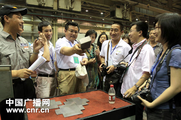 網(wǎng)絡(luò)媒體寧夏行報道組記者參觀銀川小巨人機床有限公司(攝影 馬玲艷)