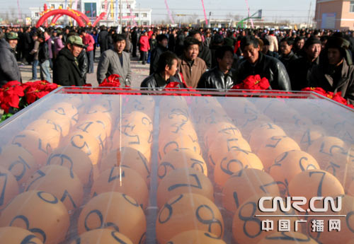 比賽期間穿插的體育彩票搖獎活動吸引農(nóng)民朋友