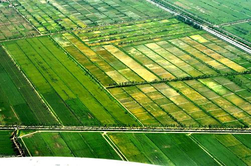 這是6月14日航拍的寧夏平原一角。素有“塞上江南”之美譽的寧夏平原大力發(fā)展節(jié)水灌溉農(nóng)業(yè),目前,灌區(qū)干支渠達3000多條,有排水溝40條,形成了比較完善的灌排系統(tǒng),灌溉面積增加至600多萬畝。新華社記者 劉泉龍 攝