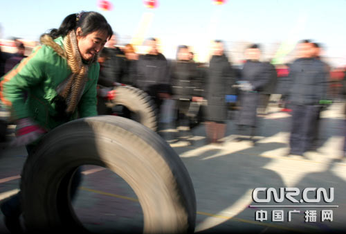 緊張激烈的滾輪胎比賽