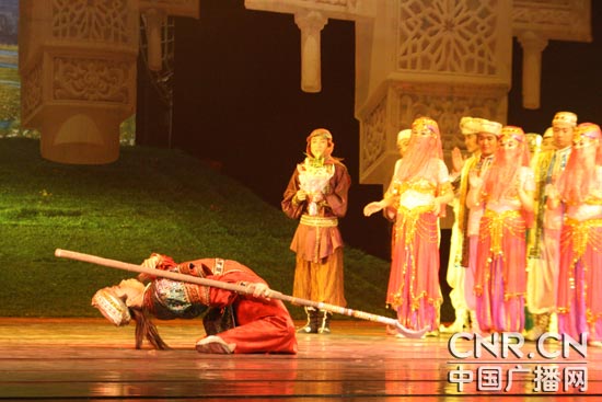 劇中男主角納蘇獨(dú)舞洋溢著一種生命力的激情。(中廣網(wǎng)記者朱虹/攝)