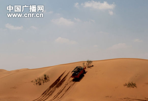 沙坡頭景區(qū)內(nèi)刺激的沙漠沖浪(攝影 陳鐘)
