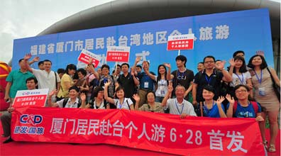 據中國之聲《全球華語廣播網》報道,大陸居民赴臺個人游今日(28日)啟動。今天上午,福建省廈門市的個人游首發(fā)團...
