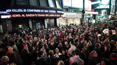 當?shù)貢r間5月1號,奧巴馬宣布擊斃了本拉登的消息之后,美國民眾在紐約時報廣場、911紀念遺址等地,舉行了慶祝活動。