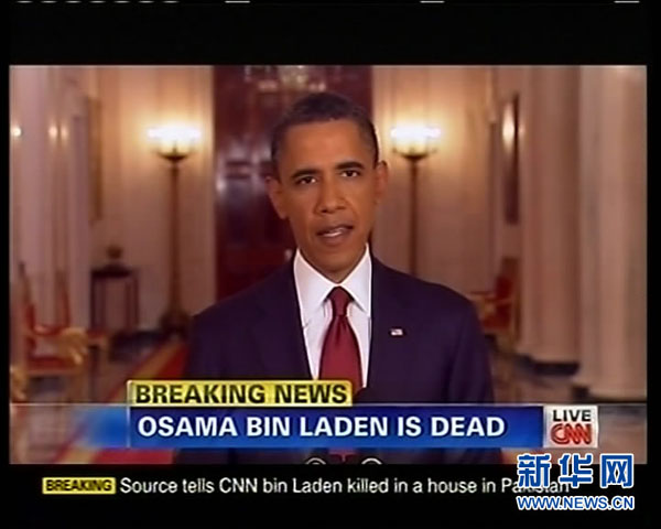 這張美國(guó)有線電視新聞網(wǎng)5月1日的視頻截圖顯示,美國(guó)總統(tǒng)奧巴馬在白宮宣布本·拉丹已死亡。新華社發(fā)