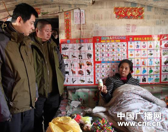 中廣網(wǎng)哈爾濱12月12日消息 (記者唐姣菊 盧飛)這幾天,繼中國廣播網(wǎng)首發(fā)報道了《4歲女童照顧癱瘓父母》的故事后,引起社會廣泛關(guān)注,其他媒體也相繼進(jìn)行轉(zhuǎn)載和跟蹤報道,感動了全國的網(wǎng)友,小孫悅的故事也一直牽動著我們的心。12月11日,中國廣播網(wǎng)記者又連夜趕到哈爾濱市,今天一早,冒著零下十幾度的嚴(yán)寒,驅(qū)車兩個多小時,趕到距哈爾濱市區(qū)一百多公里外的賓縣經(jīng)建鄉(xiāng)二道子村八家子屯,進(jìn)一步了解小孫悅一家的生活近況。