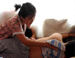 臨汾市第三人民醫(yī)院康復科病房內(nèi),孟佩杰在為養(yǎng)母劉芳英擦身(6月14日攝)。新華社記者 范敏達攝 孟佩杰在為養(yǎng)母劉芳英做康復運動(6月8日攝)。新華社記者 范敏達攝 在為劉芳英刷牙的孟佩杰示意母親長大嘴巴(6月14日攝)。