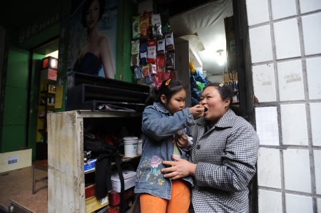 肖淑丹給媽媽喂雞腿