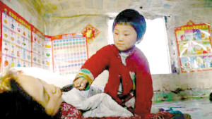 挑水、燒火、做飯、刷碗、洗衣服;照顧父母洗漱、穿衣、吃喝、大小便……小孫悅每天都要從早忙到晚。每天他們只能吃面糊、米粥和咸菜。她的父母根本吃不上藥,只能吃偏方黃瓜籽。她的棉衣已經(jīng)破得不成樣子了,冬天卻光腳穿著塑料拖鞋。有一次,她端起剛做好的粥,腳下一滑,粥全扣在爸爸孫躍民身上,嚇得她直哭。孫躍民一把抱住她,也失聲痛哭起來(lái)。終于,孫躍民和詹娟商量以后,狠心做出了決定,把她送人。她卻拽著孫躍民的胳膊哭著說(shuō):“把我送人了,誰(shuí)照顧你們?”其實(shí),他們還有一個(gè)兒子孫慧,已經(jīng)20歲了,但是很小就過(guò)繼給孫躍民的弟弟了,這些年一直沒(méi)有來(lái)往。