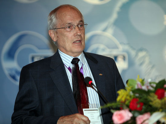 “世界產(chǎn)業(yè)領(lǐng)袖大會(huì)”于2011年9月5日在吉林省長(zhǎng)春市隆重舉行。上圖為紐約國(guó)立大學(xué)環(huán)境科學(xué)與林業(yè)學(xué)院可持續(xù)建筑和工程教授羅伯特-梅爾。(圖片來(lái)源:新浪財(cái)經(jīng) 梁斌 攝)